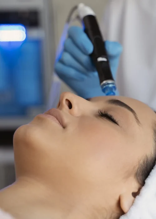 The Hydrafacial is a cutting-edge skincare treatment that combines cleansing, exfoliation, extraction, hydration, and antioxidant protection all in one. It’s a non-invasive procedure that aims to clear dead skin cells, loosen pores, and prepare them for extraction using a mix of glycolic acid, salicylic acid, and botanical extracts. Afterward, a vacuum-powered extraction method is used to remove impurities, while simultaneously delivering hydrating serums tailored to your specific skin needs.