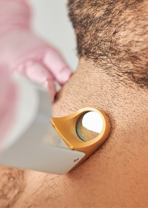 Most patients report feeling a slight discomfort during the procedure, often likened to the sensation of a rubber band snapping against the skin. We utilize the Zimmer Chiller, a device that blows cold air onto the skin during the treatment, further reducing any discomfort and enhancing the overall experience.